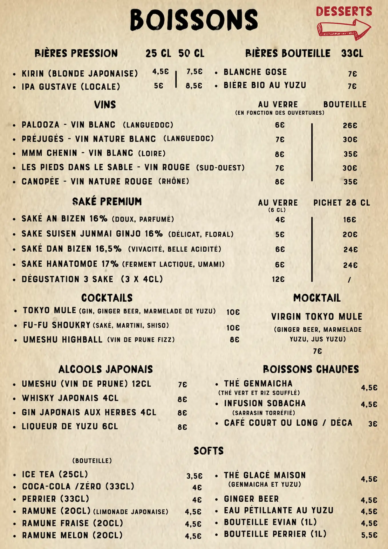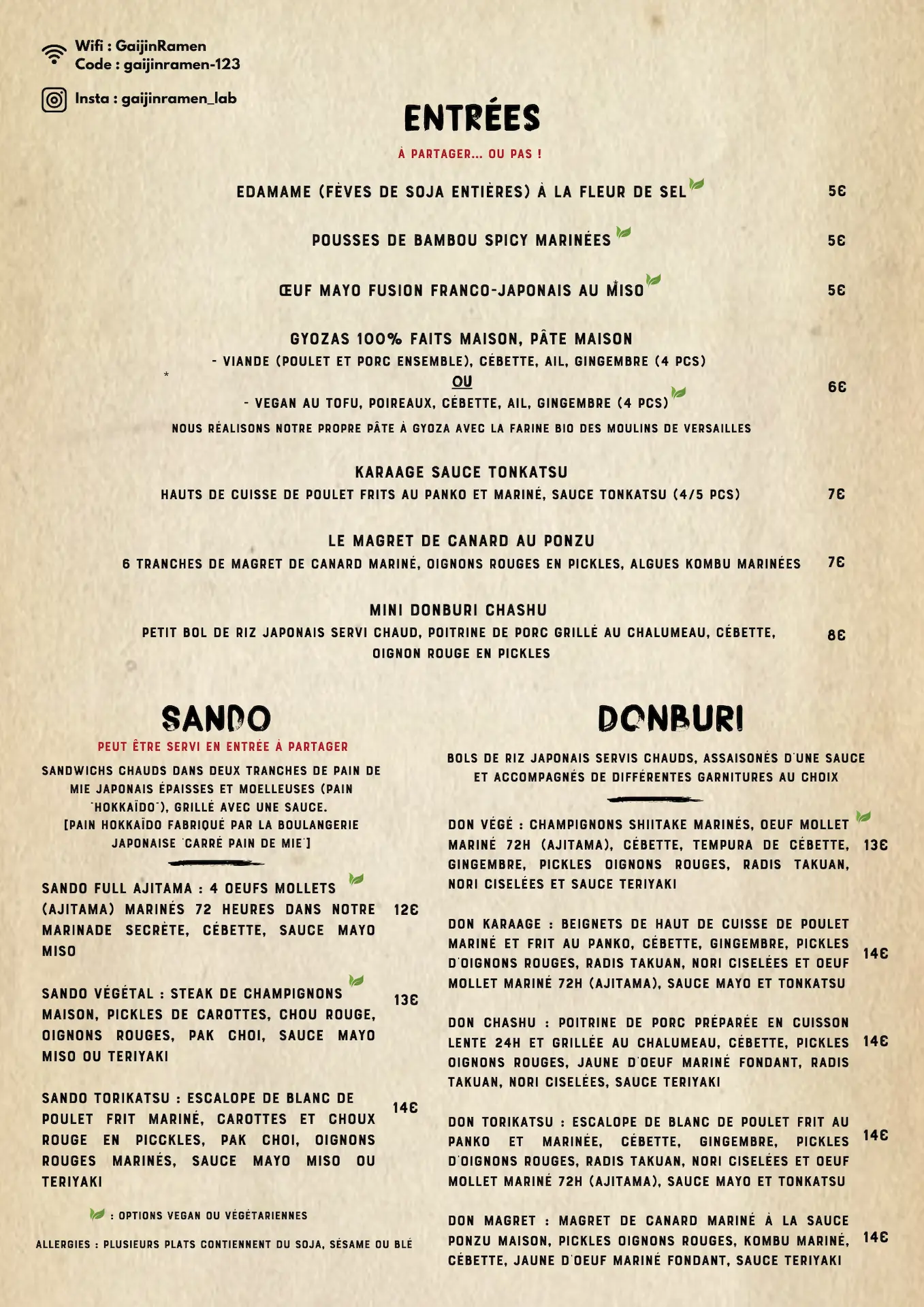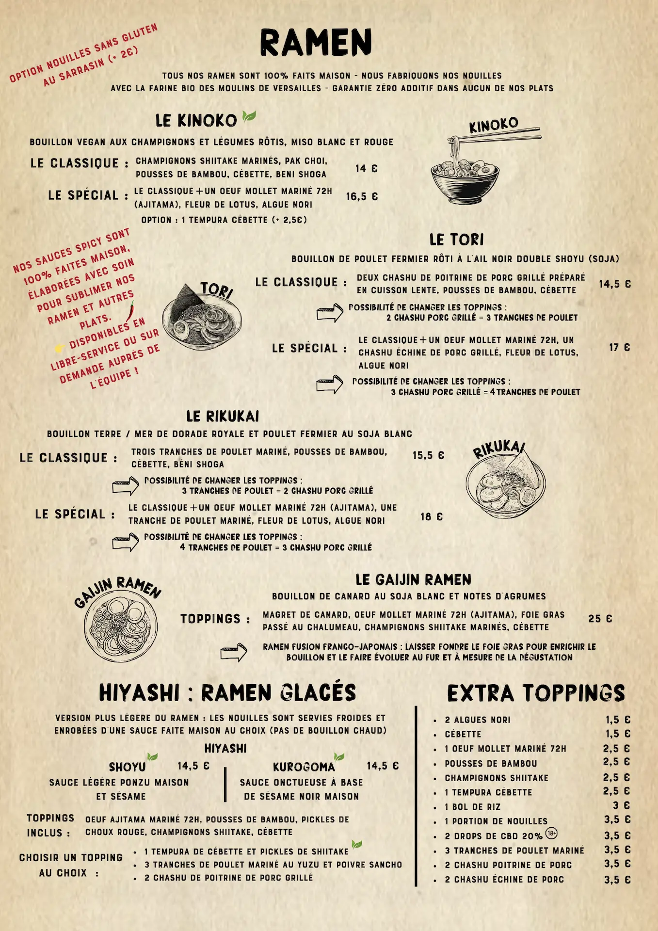 4 ramen signatures uniques 100% faits maisons dont un franco-japonais au canard, 1 Tsukemen, 2 ramen glacés, plein de donburi et sandwichs chauds à la japonaise... & more !